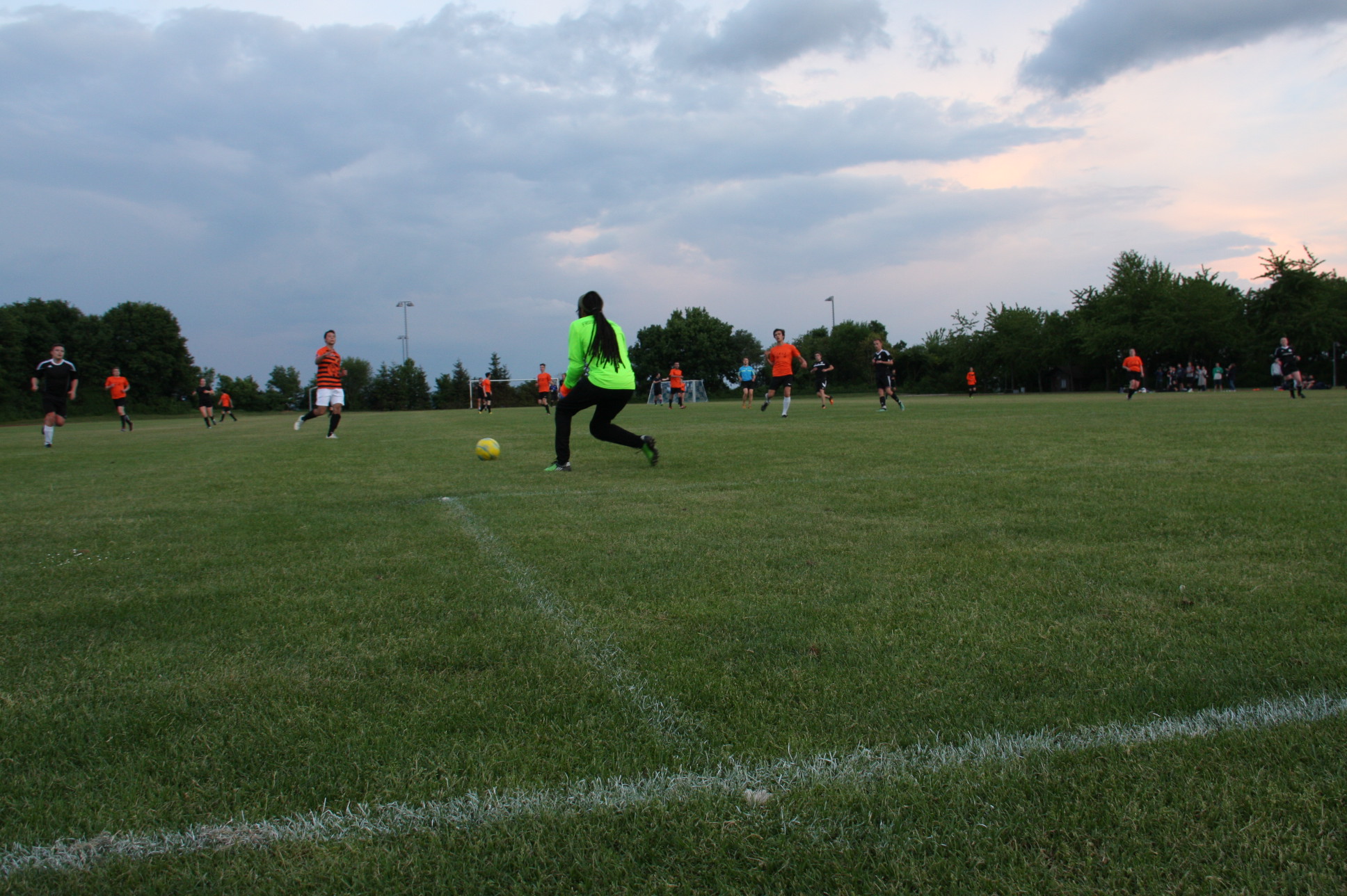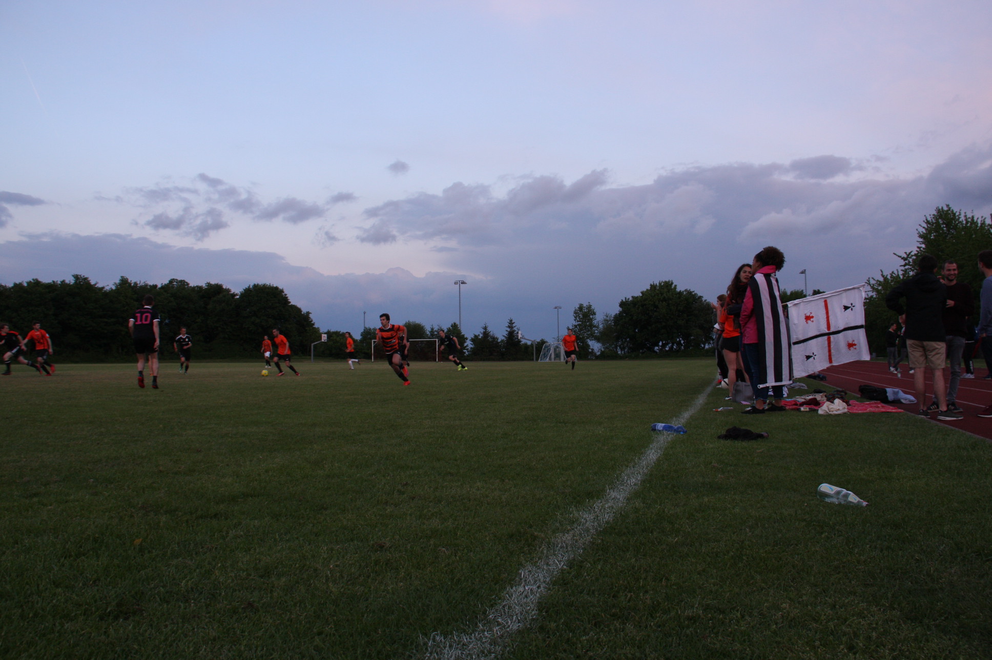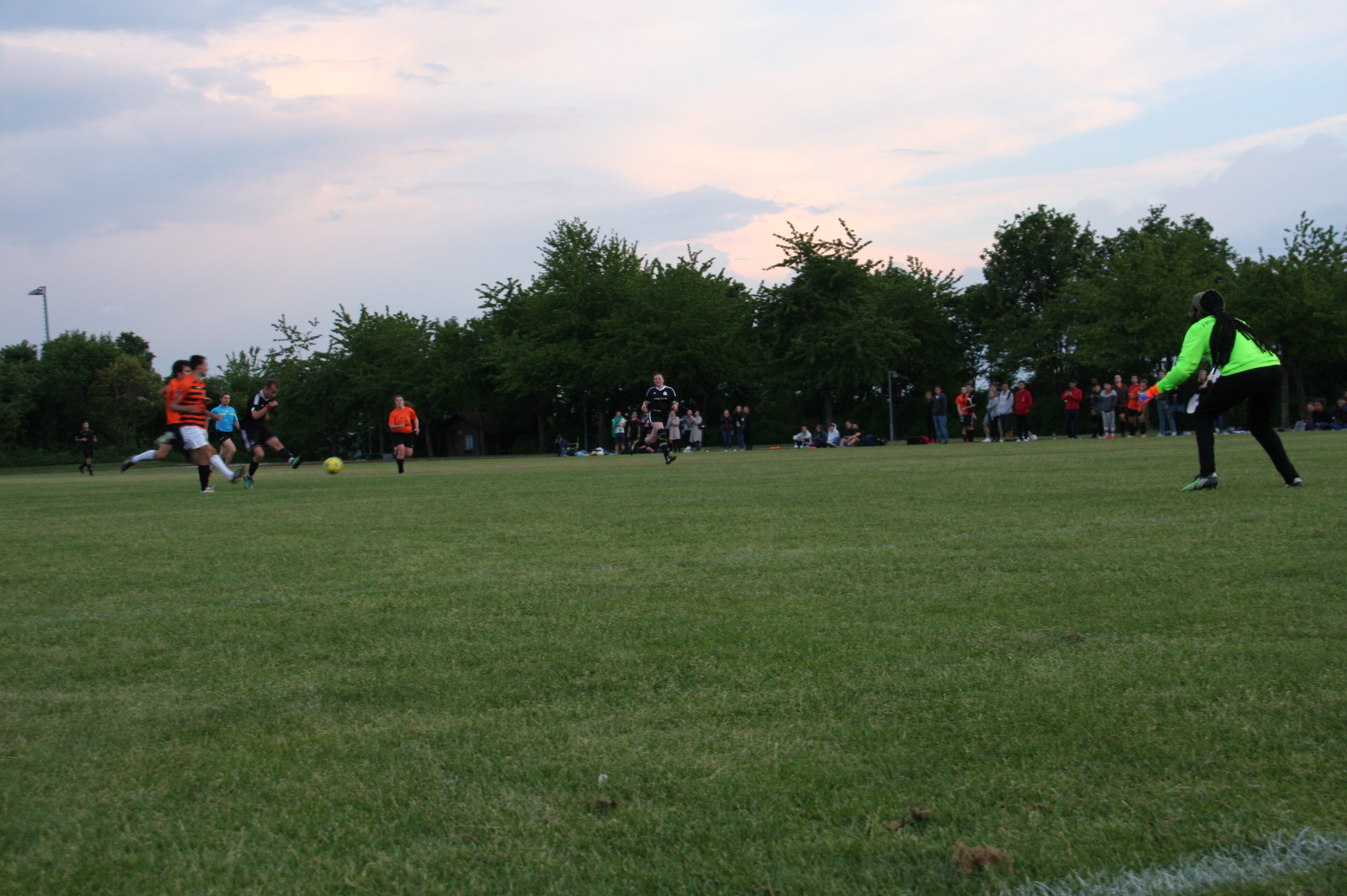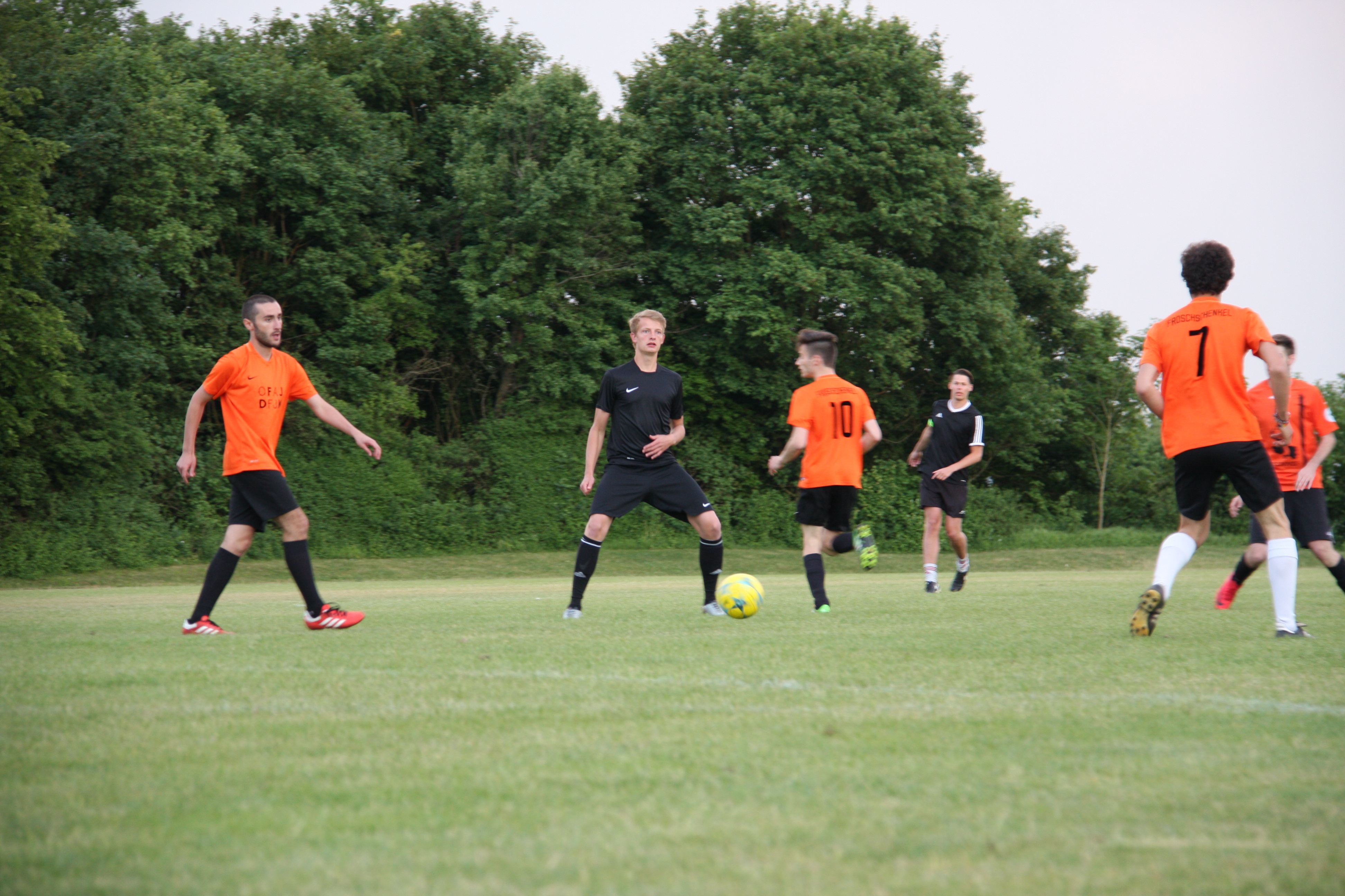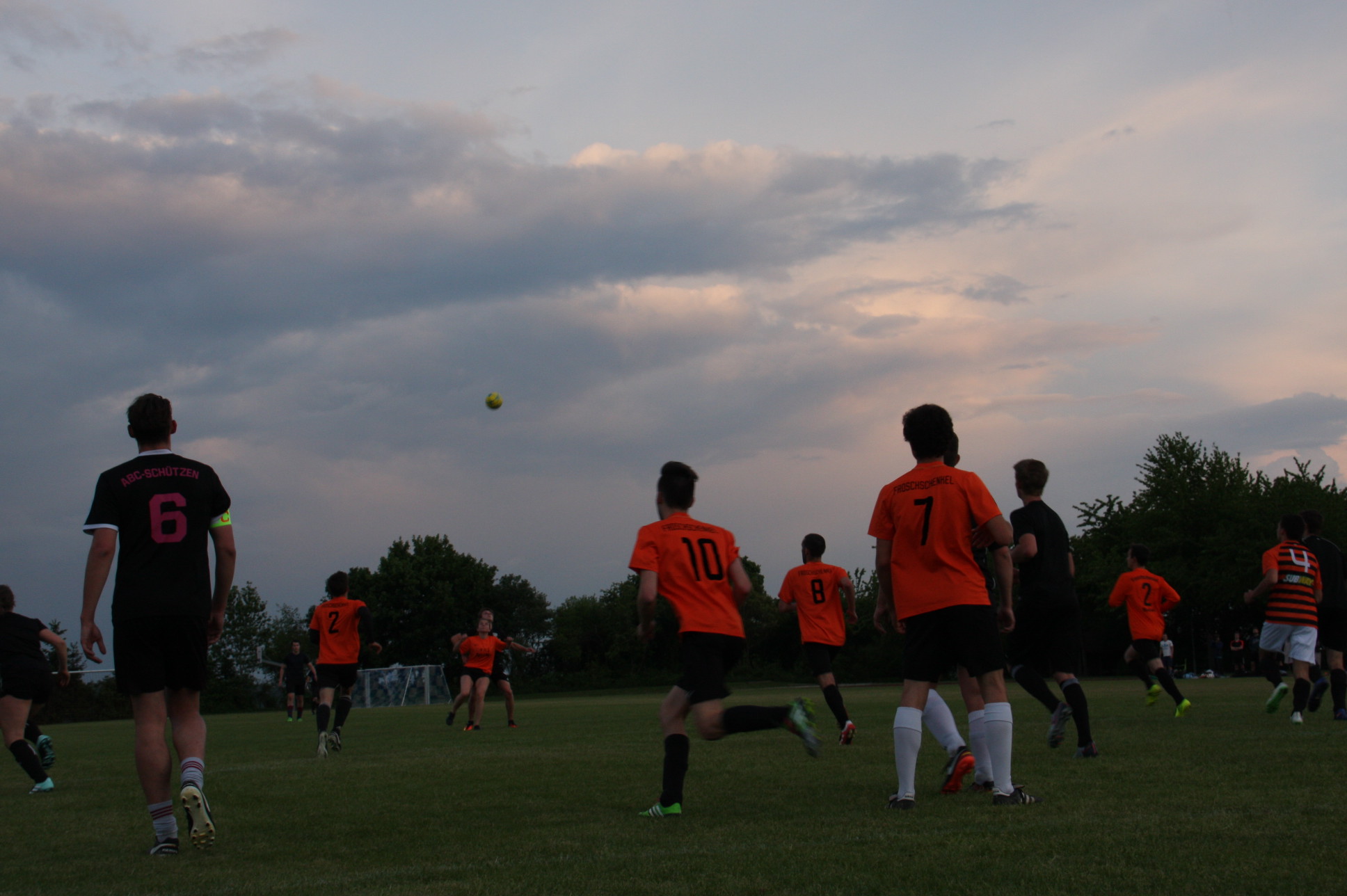 Ein eher unspektakuläres Spiel mit wenig Torchancen fand gestern Abend um circa 21 Uhr auf dem Seidlkreuz sein Ende. Mit wenig Aufwand den maximalen Erfolg erzielen. Das war die Divise der Kicker der Skul United. In den ersten 15 Minuten kam es zu keinerlei Torschüssen auf beiden Seiten. Dann aber, in der 19. Minute war es soweit: Jonathan Lange (Skul United) verwandelte einen Freistoß. Ein Freistoß, der durchaus für den Torwart der Froschschenkel haltbar gewesen wäre. Dennoch gaben sich die Orangenen nicht auf. Sie zeigten, dass sie mit einem hohen Ballbesitz durchaus in der Lage waren mitzuspielen. Leider fehlten am Ende auf Seiten der Froschschenkel die Tore. Was noch fehlte waren, bis auf eine hitzige Situation am Ende des Spiels, die großen Highlights.