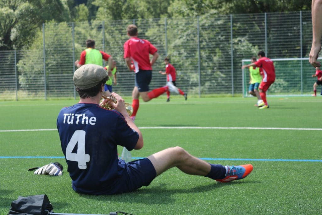 Dass die Mannschaften sich auch untereinander anfeuern und bejubeln, zeichnet den Theo-Cup aus. Die Aachener jubeln für die Tübinger Mannschaften, die Wiener für die Eichstätter –die Stimmung am Spielfeldrand ist aufgrund von Fangesängen (gern auch begleitet mit der Trompete), Fahnenschwingen und klatschenden Fans super. „Neben dem Fußball stehen beim TheoCup internationale Bekanntschaften und das gemeinsame Wochenende im Vordergrund“, sagt Tobias Aurbacher, Hauptorganisator. Der TheoCup in Eichstätt stand unter dem Motto einer Friedensbotschaft, das klang auch bei der Andacht auf dem Sportplatz am Samstagmorgen durch.