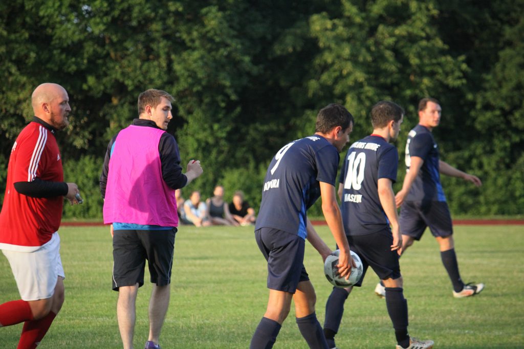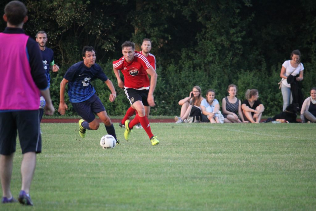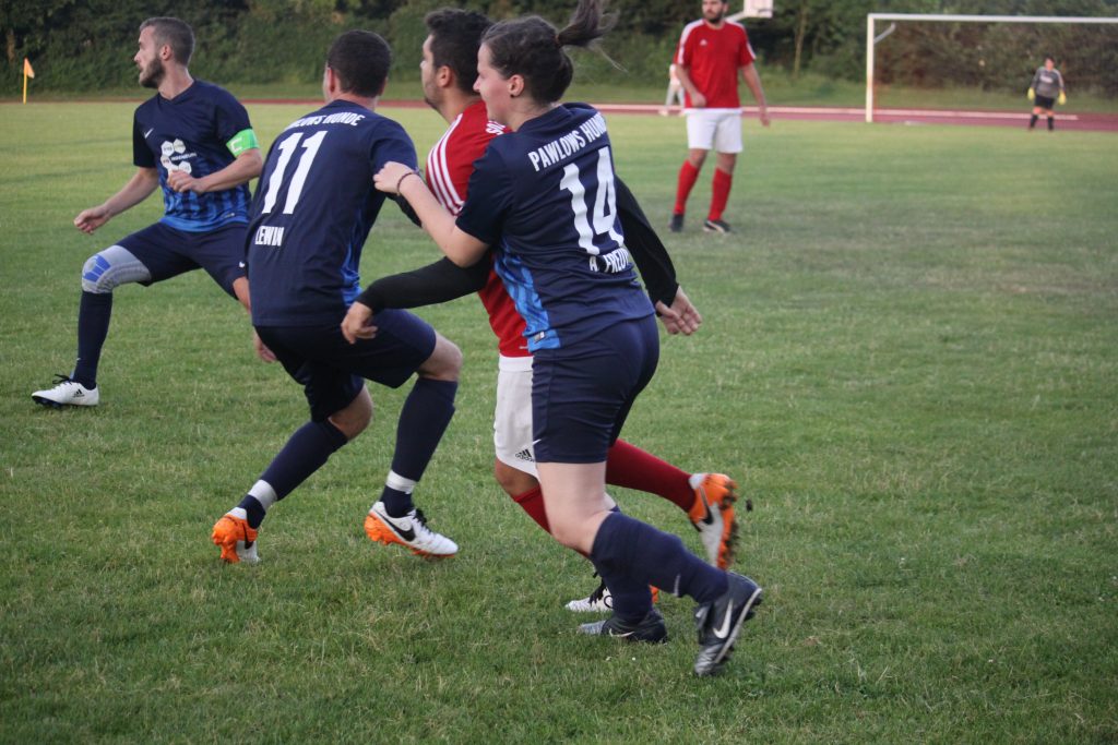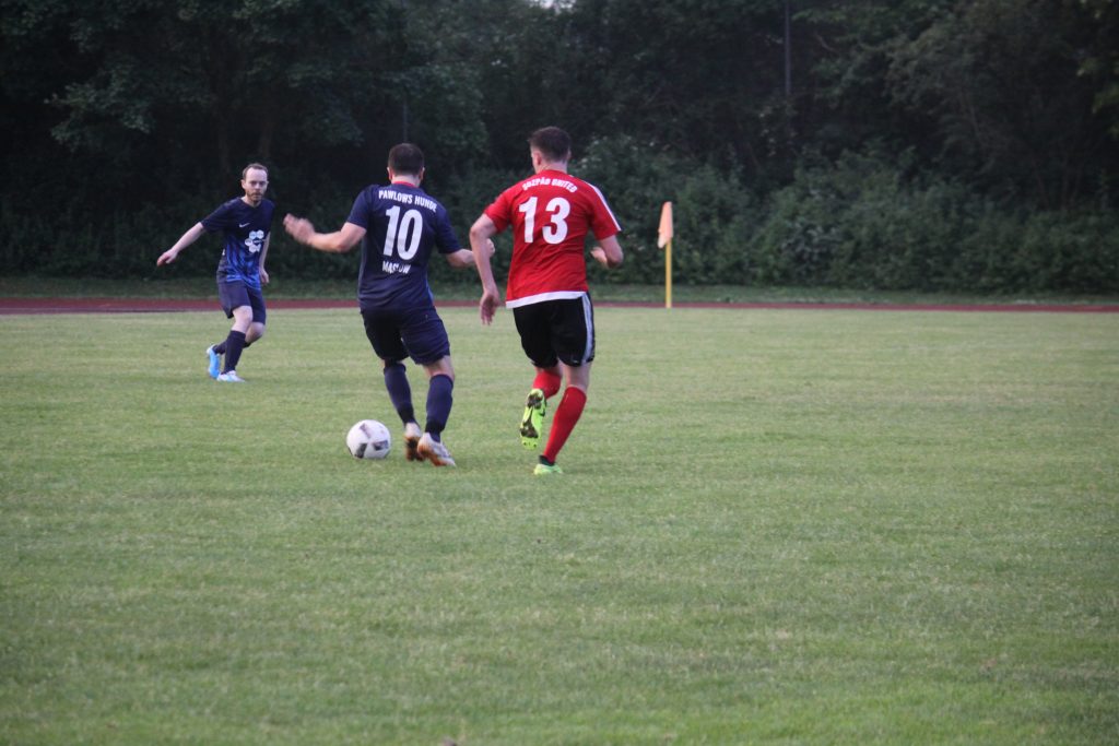 Die schwarzen Wolken, der Donner und Regen über Eichstätt waren ein Spiegelbild des Spitzenspiels in Gruppe B. Auf dem noch vom letzten Regenschauer durchnässten Rasen am Seidlkreuz ging es im Spitzenspiel zwischen Sozpäd United und den Pawlows Hunden krachend zur Sache. Obwohl der Schiri ohne Verwarnungen auskam, war den beiden Teams sichtbar bewusst, um was es in diesem Spiel ging.