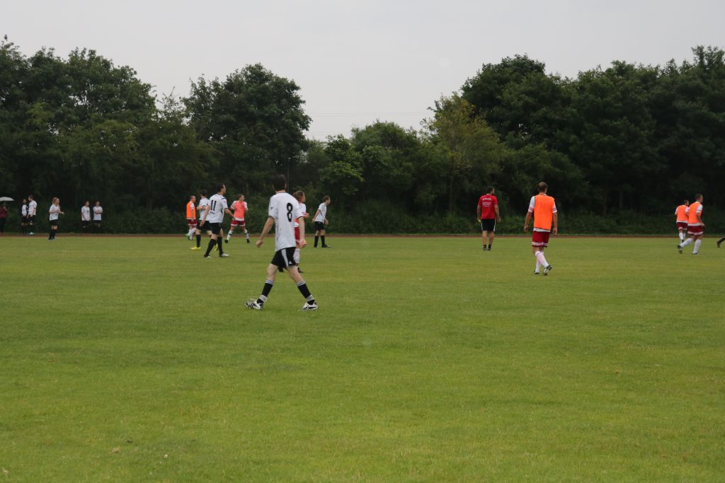 Nur wenige Minuten später, kurz vor Anpfiff des Spiels, liefen die beiden Mannschaften ein. Aber was war denn das? Die Sozpäds hatten sich einen Spaß erlaubt: Denn Röder war als Schiedsrichter nicht allein beim Spiel. Seine Unterstützung waren zwei Linienrichter, deren Fahnen gelbe T-Shirts ersetzten und zwei Torrichter mit zwei Regenschirmen, die sich hinters Tor platzierten. Kurz vor Anpfiff prüfte dann auch Anton Kornbichler als 4. Offizieller die Leitung nach Köln für den Videobeweis und achtete genau auf die Länge der Stollen und die Einhaltung der markierten Coaching-Zonen. Ernüchterndes Fazit: Selbst sechs Schiedsrichter verhindern beim Präsicup keine obligatorische Schiri-Schelte („Das war doch klarer Elfmeter!“).