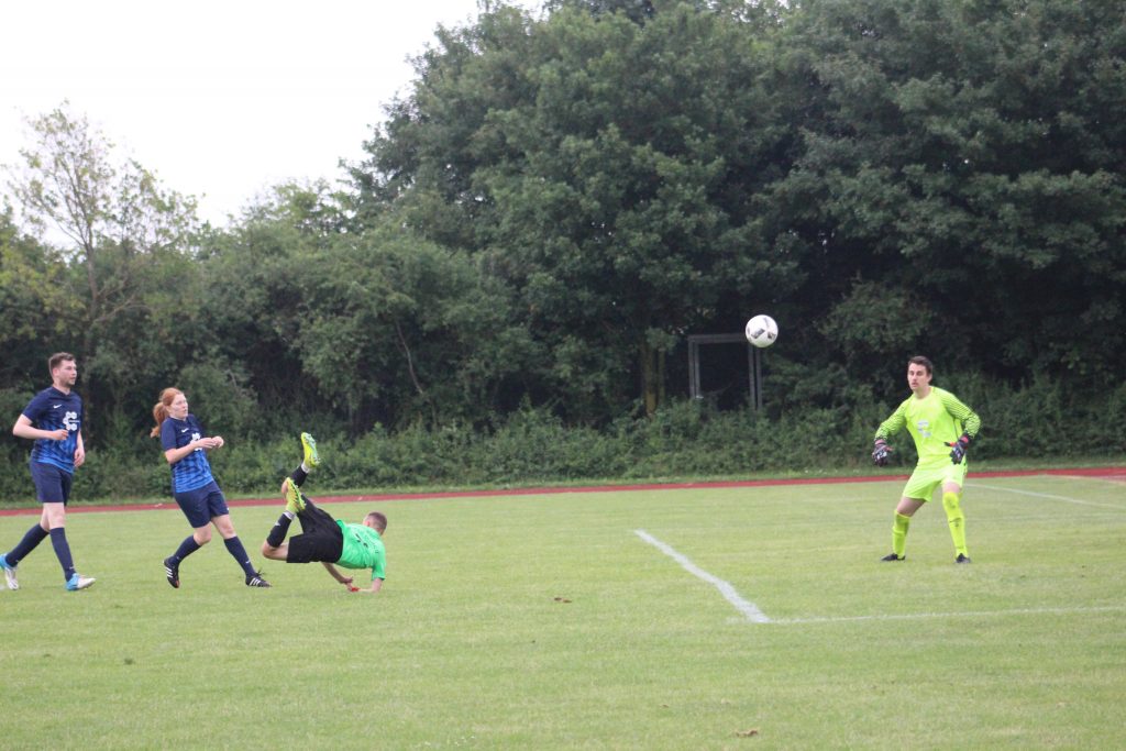 Wir schweifen ab, zurück zum Seidlkreuz: Skul musste wechseln und kassierte kurz darauf das 0:1. Nach Glanztat von Ulrich Sauter alias Ulli Kahn konnte Kahn den Hunde-Stürmer Fabian Faust nicht mehr an der Führung hindern. In der 18. Minute dann die erste (und in diesem Spiel auch letzte) Exmatrikulation: Die Nummer 69 von Skul United, die aus Persönlichkeitsgründen hier nicht mit vollem Namen steht, wurde von Annika Reiter, die aus Persönlichkeitsgründen hier mit vollem Namen steht, getunnelt. Nachspielzeit erste Halbzeit, nächster Schock für Skul: Auf Höhe des Elfmeterpunktes schoss Tobias Caspersen die Kugel in die Maschen.
