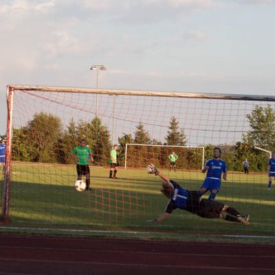 19.58 Uhr: Alle guten Dinge sind drei – mit dem dritten Schützen, der erste verwandelte Elfmeter für die SozPäds. 3:2